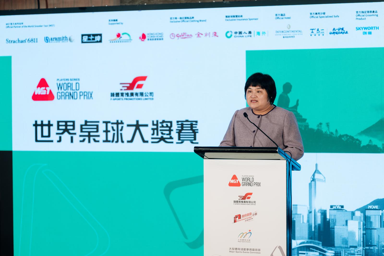 文化體育及旅遊局體育專員蔡健斌先生,JP:「我感謝香港鋒體育推廣有限公司(F-Sports Promotions Limited)再次為香港帶來這項國際桌壇大賽,以行動展現了公司對香港體育發展的支持;也以行動對啟德體育園及其管理層投下信心的一票。主辦單位與啟德體育園公司持續總結經驗,並不斷改進。這種合作和追求卓越的精神,正是大家將體育活動既要做得到,亦要做得好,一起走更遠的路的一份力量;也是啟德體育園公司自開幕10個月已成為國際級盛事新據點,主場館的門票收入已名列榜首的一個重要因素。」